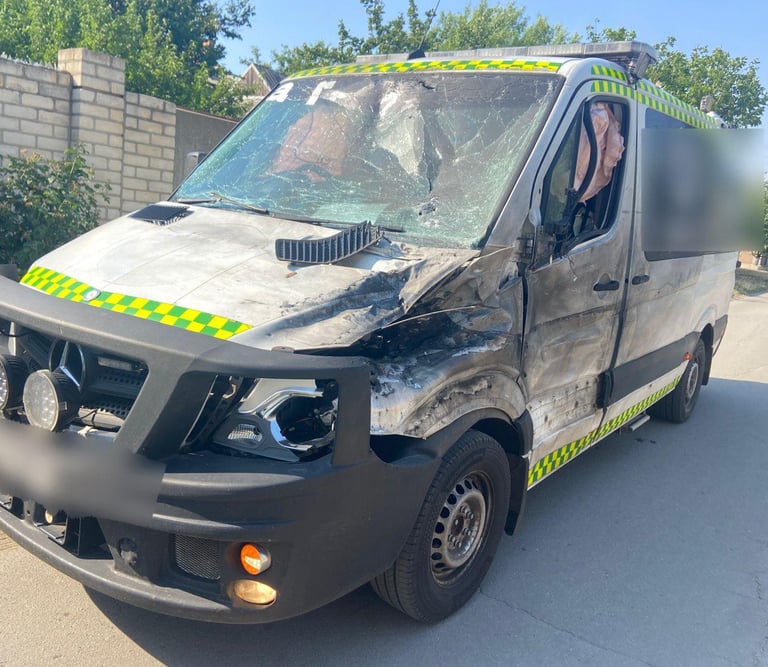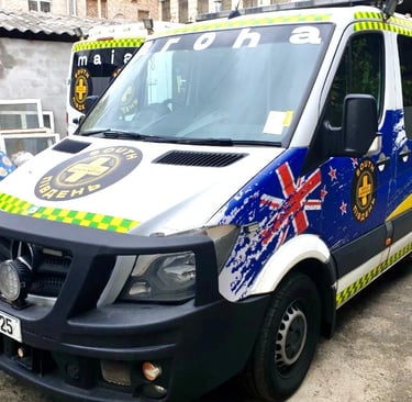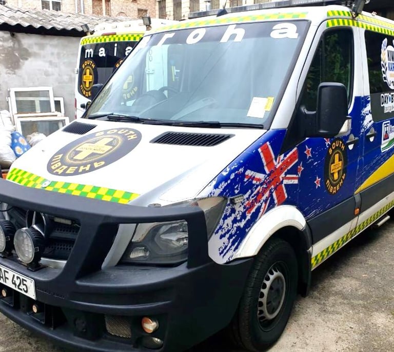 Before and After...One of KiwiKARE's ambulances was attacked by a Russian drone. The drone was trying to kill the driver, but since it was an Australian ambulance the steering wheel is on the opposite side, so the driver luckily survived the attack.