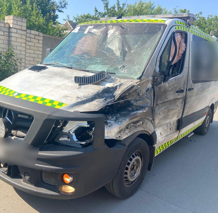 Before and After...One of KiwiKARE's ambulances was attacked by a Russian drone. The drone was trying to kill the driver, but since it was an Australian ambulance the steering wheel is on the opposite side, so the driver luckily survived the attack.