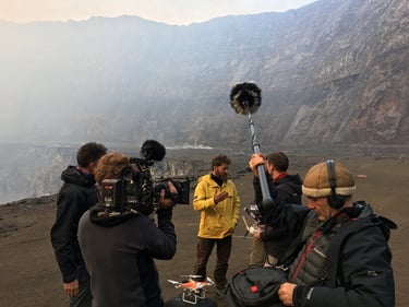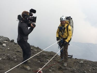 On the One Strange Rock shoot, the plan was to descend to the lowest tier of the crater to capture footage and collect samples. Initially, the lava lake was considered stable. Then a new vent opened. Lava bombs began firing. The volcano shifted from effusive to violent in real time.