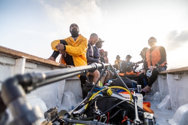 At some point during the expedition, a boat approaches. What seems like a routine coast guard check begins to shift. An unidentified group boards the vessel. Voices are raised. No one is quite sure who they are or what they want. Before long, members of the crew are taken away for questioning, and passports are confiscated.